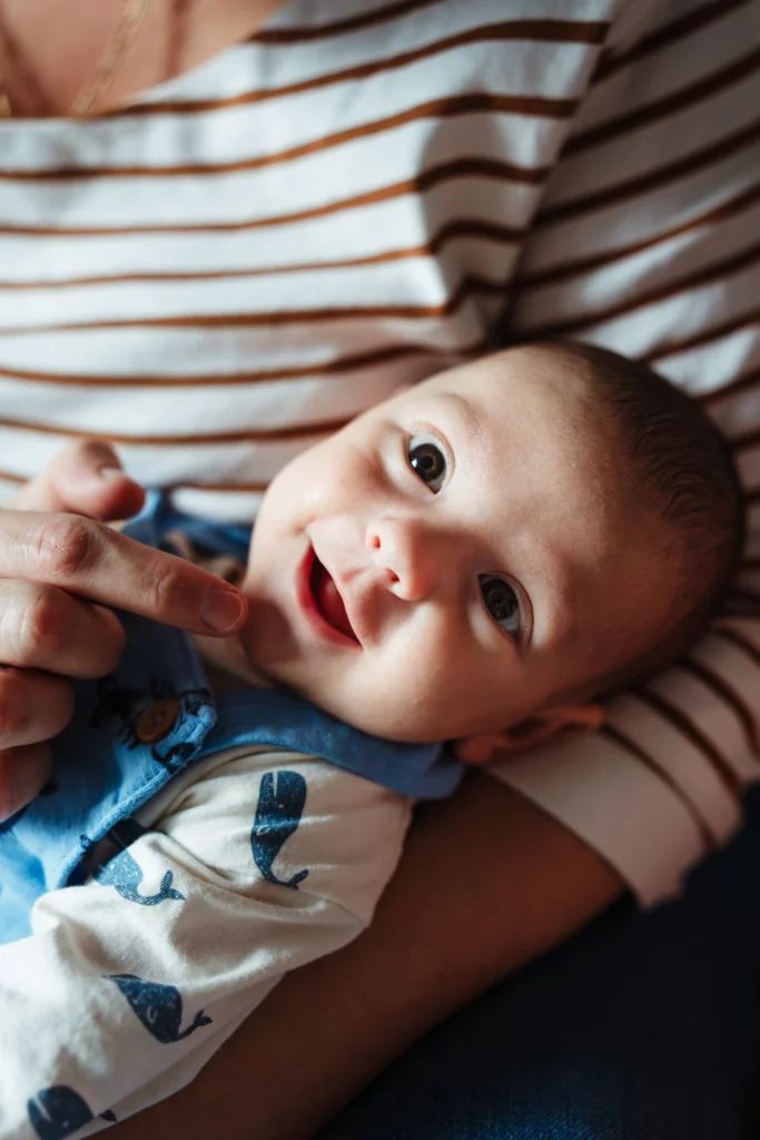 Entre 2 et 4 mois, bébé commence à vraiment interagir avec vous : il fixe le regard, réagit aux voix et aux stimulations et commence même à esquisser ses premiers sourires. Ces phases d’éveils deviennent aussi plus longues.